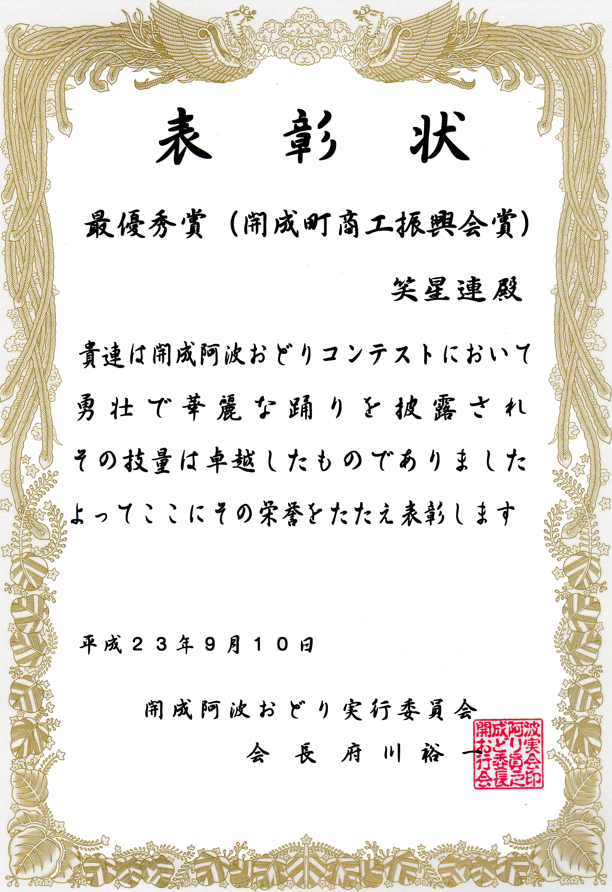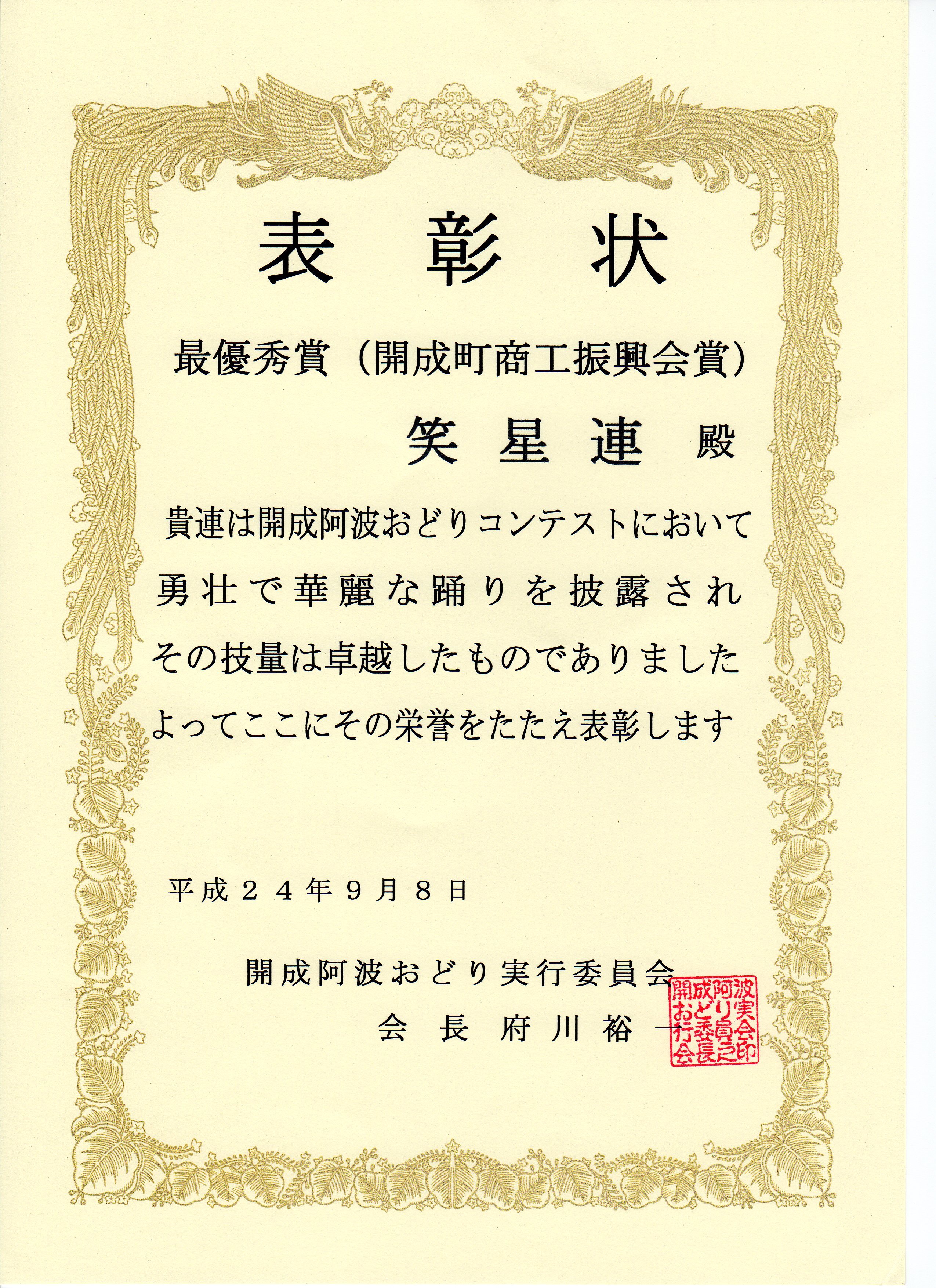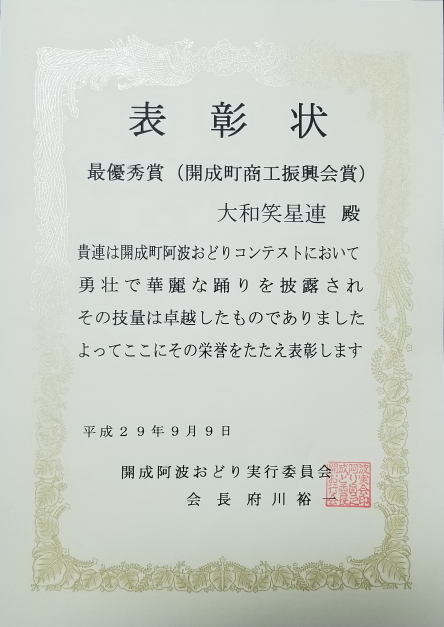 09月10日(土)第24回開成町阿波踊り・・・最優秀賞受賞